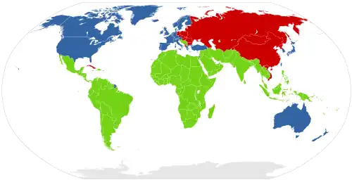 Le terme Second monde fait référence à l'ex-bloc communiste, c'est-à-dire les pays à économie socialiste sous influence de l'URSS, notamment ceux du pacte de Varsovie[1]. À la fin de la Seconde Guerre mondiale, il y avait 19 pays communistes.