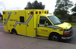 Ambulance d'Urgence-santé, à Montréal, équipée de paramédics en soins primaires.