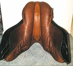 La selle est un objet, en cuir ou synthétique, placé sur le dos d'un cheval (ou de toute autre monture : autruche, chameau, ...) et sur lequel le cavalier se place.