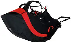 Renforcée, avec souvent deux poches séparées de parachute de secours, avec un écartement de la ventrale maximal, et une assiette assez basse pour renforcer la commande au poids du corps.