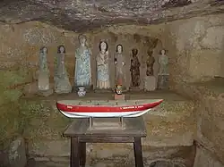 Les statues des Sept Dormants d'Éphèse dans la crypte, le bateau a été offert par Louis Massignon. | |||||