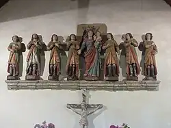 - l'autel du transept nord porte une statue de saint Joseph, une Mater dolorosa qui, en 1878, selon le témoignage de François-Marie Luzel, était « entourée d'une multitude de béquilles vouées par les malades guéris pour avoir invoqué les Sept-Saints et lavé leurs pieds avec l'eau sainte de la fontaine »[1], une Vierge à l'Enfant et un saint non identifié.