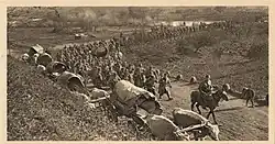 Rapidement, à la suite de l'évacuation bulgare, la reconquête du royaume prend les allures d'une vaste guerre de mouvement. En effet, face à des troupes allemandes qui retraitent méthodiquement en détruisant les infrastructures routières et ferroviaires, un groupement franco-serbe extrêmement mobile balaie tous les barrages positionnés sur son passage par le commandement austro-allemand[32]. Ce groupe, éloigné de ses bases de ravitaillement, se ravitaille dans le pays, appuyé par les partisans serbes, ravitaillé par les paysans[33].