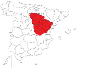 La Serrania Celtibérica couvre une superficie de 63 099 km2 et comprend 1632 communes[3], ou selon une autre définition 1355 communes sur 65 824 km2[4], divisées entre les provinces de Teruel et Saragosse en Aragon, Cuenca et Guadalajara dans la Castilla-La Mancha, Burgos, Segovia et Soria dans la Castille-et-León, Castellón et Valence dans la Communauté valencienne et la Rioja[5]. La Serrania Celtibérica est une région intérieure, c'est-à-dire sans accès à la mer[6], enclavée et traversée par le Système ibérique, ce qui fait qu'une bonne partie de ses municipalités est déclarée zone montagneuse selon les critères de l'Union européenne.