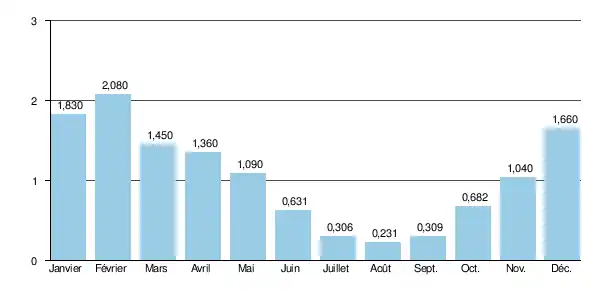 À l'étiage, le VCN3 peut chuter jusque 0,072 m3/s, en cas de période quinquennale sèche, soit 72 litres par seconde, ce qui n'est pas excessivement sévère comparé à certains autres affluents du Tarn.