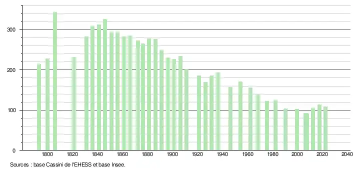 - ↑ Fiches Insee - Populations de référence de la commune pour les années 2006, 2007, 2008, 2009, 2010, 2011, 2012, 2013, 2014, 2015, 2016, 2017, 2018, 2019, 2020, 2021 et 2022.