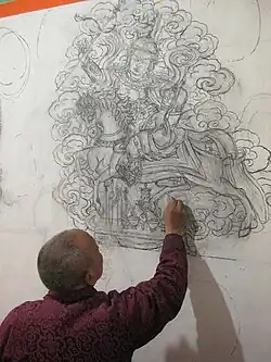 Le Lama Shashi dessine le nouveau gyalpo est commence par aider son père et son frère aîné, Krsna Dhoj Tulachan, âgés de 9 ans, les accompagnant dans les villages autour de Mustang. À l'âge de 18 ans, il avait reçu sa première mission en solo pour peindre le village de Mani Lha K'an de Gemi, District de Mustang[4].
