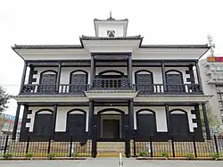 Dans la préfecture de Yamanashi, la ligne Chūō est ouverte en , et la ligne qui partait de Kōfu vers l'ouest traverse les secteurs d'Ōshimojō et de Nagatsuka. En 1872, l'école primaire de Mutsuzawa est créée à Kamezawa, dans le village de Mutsuzawa, et un nouveau bâtiment scolaire est construit en 1875. Ce nouveau bâtiment scolaire était un bâtiment de style giyōfū promu par le gouverneur de la préfecture de Yamanashi Fujimura Shirō (ja) (藤村 紫朗). L'ancien bâtiment de l'école primaire de Mutsusawa est plus tard déplacé près de la gare de Kōfu et est devenu le centre commémoratif Fujimura de Kōfu (ja).