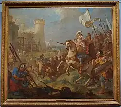 Mais après les Burgondes, les Francs, réconciliés avec Gondebaud, essayent à leur tour d'accéder à la mer. Au printemps 501 ou 502, mais plus probablement en 501[3], ils font une première tentative pour s'emparer de l'ancienne préfecture des Gaules. Cette expédition est conduite par « Thierry, fils de Clovis, [qui] après avoir remporté une victoire à Nîmes est battu près d'Arles, puis dans la plaine de Bellegarde » peu de temps avant la mort de l'évêque d'Arles d'origine bourguignonne Éon[N 3]. La défaite franque et burgonde transparait dans le testament de l'évêque arlésien, qui « ayant reçu la promesse que ses volontés seraient accomplies, destine tout son bien au rachat des captifs »[N 4].