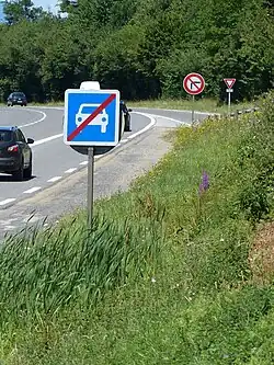 La signalisation de la fin des sections de route à accès réglementé est obligatoire. Elle doit être assurée au moyen du panneau C108. Il doit être implanté en signalisation de position sur une bretelle de sortie ou à la fin de la section de route à accès réglementé. Il peut être complété par un panonceau M3. Le panneau C108 peut être implanté en présignalisation. Il doit alors être complété par un panonceau M1 ou M3.