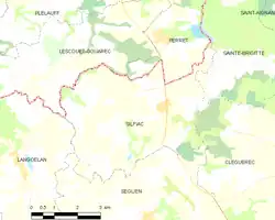 La superficie de la commune est de 2 246 hectares et son altitude varie entre 197 mètres et 276 mètres. Le bourg est à 270 mètres au-dessus du niveau de la mer, ce qui en fait le bourg le plus haut du Morbihan.