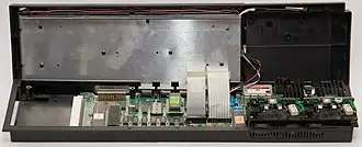 L’intérieur du Sinclair QL : le premier long circuit intégré sur la gauche est le processeur Motorola 68008.