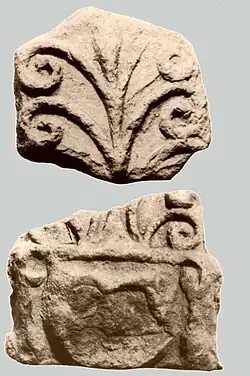 - Le premier, de plan rectangulaire, possède une cella de 8 m sur 6 m avec des murs épais de 0,40 m. Le mobilier est très réduit : des clous, quelques tessons et quatre monnaies (un as d'Auguste, un dupondius de Nîmes, un sesterce de Marc Aurèle et monnaie de Lucile).