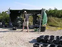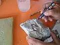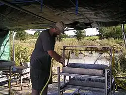 Des sédiments ont été lavés et tamisés révélant des milliers de microrestes de vertébrés, notamment des dents inframillimétriques, ainsi que des fragments de coquilles d'œufs de tortues, de crocodiliens et de dinosaures[3]. La mise en place de la station de tamisage a permis les années suivantes de tamiser plusieurs tonnes de sédiments.