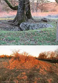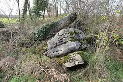 - ↑ Le caractère mégalithique de cette pierre est douteux : la pierre est de petite taille et le bassin en surface est de forme trop régulière.