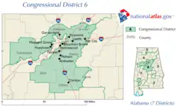 Le 6e district congressionnel d'Alabama est un district du Congrès des États-Unis en Alabama qui englobe les parties les plus riches de Birmingham, de presque tout le comté de Jefferson à l'extérieur de Birmingham, de la majeure partie du comté de Blount et de l'intégralité des comtés de Bibb, Chilton, Coosa et Shelby.