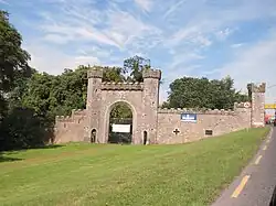 Surplombant la Boyne, à quelques kilomètres en amont de Newgrange et le site de la célèbre bataille de la Boyne, Slane Castle, dans sa forme actuelle a été construit sous la direction de William Burton Conyngham, avec son neveu le premier marquis Conyngham. La reconstruction remonte à 1785 et est principalement l'œuvre de James Gandon, James Wyatt et Francis Johnston. Ce dernier a également été l'architecte responsable de la porte gothique sur la Mill Hill, situé à l'est du château.