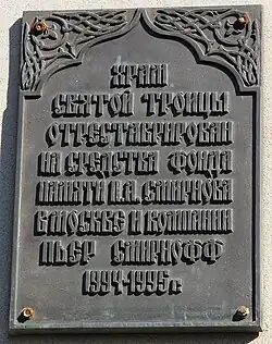 - ↑ La graphie Смирнофф est utilisé dans la plaque : File:Piatnitskoe Cemetery 280811 Holy Trinity Church(3).jpg.