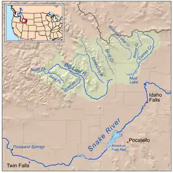 Sur une grande distance la rivière Snake parcourt la Plaine de la Snake River, une région topographique en forme de croissant qui s'étend au sud de l'Idaho de la frontière avec le Wyoming à la frontière avec l'Oregon. Il s'agit en fait d'une plaine au climat semi-aride dont l'altitude moyenne est de 1 500 m. De nombreuses rivières au cours sinueux y ont creusé de profonds canyons. À l'ouest de Twin Falls la plaine est recouverte de sédiments lacustres. En effet à l'époque du Miocène un barrage de lave a obstrué la vallée et a donné naissance au lac Idaho. La taille du lac a varié au cours du temps avant que celui-ci ne disparaisse définitivement au Pléistocène.