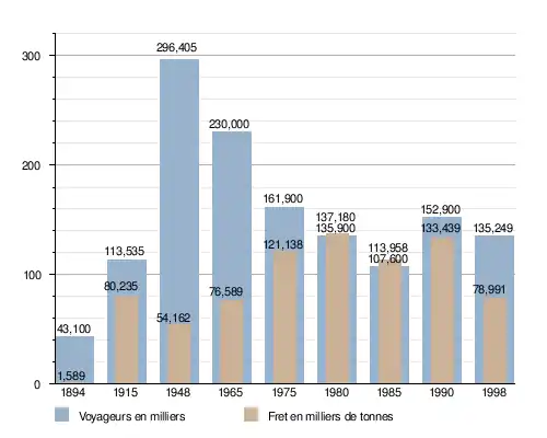 La compagnie a vu le nombre de voyageurs transporter augmenter chaque année jusqu'en 1948 puis le nombre a diminué, notamment à cause de l'introduction de l'horaire cadencé par les CFF à Chavornay et des correspondances mal assurées. Le fret, quant à lui, a subi des variations positives et négatives mais tendant vers l'augmentation constante[18].