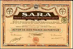 La Société des Automobiles à Refroidissement par Air (SARA) est un constructeur automobile français, qui commença à produire des cyclecars de qualité dès 1922 dans son usine de Courbevoie. Sa particularité était son moteur de 1 100 cm3 à quatre cylindres en ligne refroidi par air.