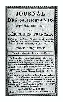 Cette société publie un mensuel : « Journal des gourmands et des belles ou l'Épicurien français, Rédigé par quelques Littérateurs Gourmands, plusieurs Convives des Diners du Vaudeville, un Docteur en Médecine, etc., etc., etc. »