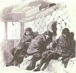 - ↑ Dessin de Henri Emy, détail du frontispice du chapitre 1 de Paris chantant, Romances, chansons et chansonnettes contemporaines, par Marc Fournier, etc., Lavigne éditeur, Paris, 1845.