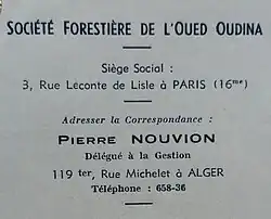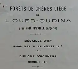 La Société forestière de l’Oued-Oudina a exploité les foŕêts de chênes lièges acquis à partir de 1864 par le préfet Jean-Baptiste Nouvion et Henri Tessier[1],[2]