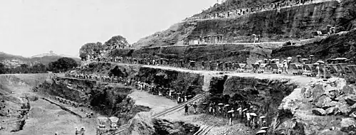 Le , une concession de 23 000 hectares fut accordée à la « Société française des charbonnages du Tonkin ». Ses débuts furent difficiles, puis le succès est venu après 1894, année de la découverte des couches puissantes affleurant à Hatou, qui permirent les premières exploitation à ciel ouvert. Après seulement 2 000 tonnes en 1890, la production atteint 501 000 tonnes en 1913, 1,7 million de tonnes en 1929, 2,3 millions en 1937 et 2,6 millions en 1939[2]. C'est seulement 5 % de la production de charbon de la métropole, mais à des coûts beaucoup plus faibles, d'où une très forte rentabilité.