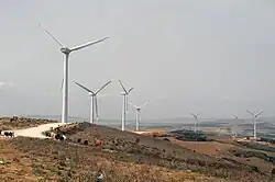 La STEG exploite par ailleurs dans le cap Bon le parc éolien de Sidi Daoud, dont la seconde extension est achevée en 2008[9]. La société espagnole Gamesa, spécialisée dans la production de l'énergie éolienne, signe un contrat avec la STEG en 2009 pour la fourniture de 91 turbines d'éoliennes. 46 d'entre elles sont installées dans la région d'El Alia et de Metline, le reste à Kechabta dans le gouvernorat de Bizerte ; le coût prévisionnel de cette opération s'élève à 360 millions de dinars[10]. L'entrée en service de ces deux parcs, prévue pour fin 2009, est repoussée à [11].