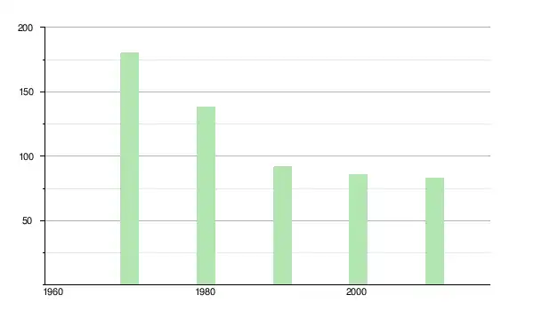 | 1980 | 138 | ▼ −23,33 % | |