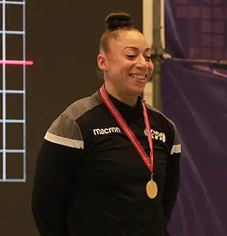 - ↑ Brian Oliver, « Landmark golds for Britain's Campbell and Norway's Koanda at European Weightlifting Championships », InsideTheGames.biz, (lire en ligne, consulté le )