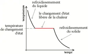 À pression constante, la solidification des corps purs se fait à température constante , la chaleur libérée par la solidification (chaleur latente de fusion) compense la chaleur perdue par le refroidissement. Les transferts thermiques sont eux-mêmes modifiés par les changements de propriété de la matière associés au changement de phase[1].