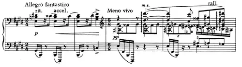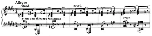 Mes. 140-148. Motif Allegro fantastico suivi par un thèmepresto tumultuoso esaltato.