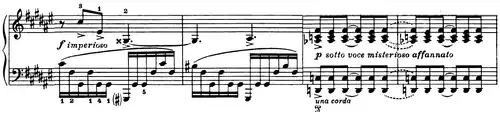 Mes. 96-99. Motifs Imperioso et sotto voce misterioso affanato.