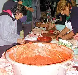 Pour l'élaborer, il faut hacher finement de la viande maigre et du lard de porc ; le maigre doit représenter entre 30 % et 60 % du total du mélange. Puis on la pétrit avec 4 % à 7 % de pimentón doux et fort (plus il y a de lard, plus il faut ajouter de pimentón) et 1,8 % à 2,8 % de sel. Certaines familles ajoutent aussi d'autres épices. Le pétrissage est nécessaire pour que la viande s'imprègne des arômes des épices. La pâte obtenue sert à remplir des boyaux naturels du même porc. On les ferme et on couvre le nœud de pimentón. On suspend les charcuteries à température et humidité contrôlées pendant une semaine à deux ans.