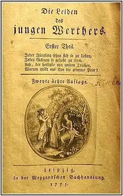 Les Souffrances du jeune Werther (titre original en allemand : Die Leiden des jungen Werthers[1]) est un roman épistolaire de Johann Wolfgang von Goethe qui fut publié anonymement et parut à l'occasion de la foire du livre de Leipzig en automne 1774 ; une version remaniée et légèrement augmentée paraît en 1787 à l'occasion de la publication des œuvres complètes de l'auteur.