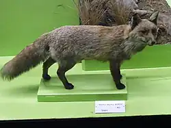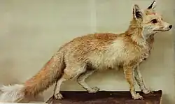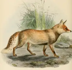 | Vulpes v. stepensis | Brauner, 1914 | Une espèce légèrement plus petite que V. vulpes crucigera, avec une pelage plus clair et une fourrure plus courte et plus coarser. Les spécimens des montagnes de Crimean ont une fourrure brighter, fluffier et plus dense[11] | Les steppes près de Kherson, en Russie | krymeamontana (Brauner, 1914) crymensis (Brauner, 1914) |