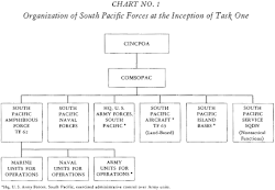 Organisation des forces du Pacifique Sud peu avant la première opération, l'invasion de Guadalcanal.