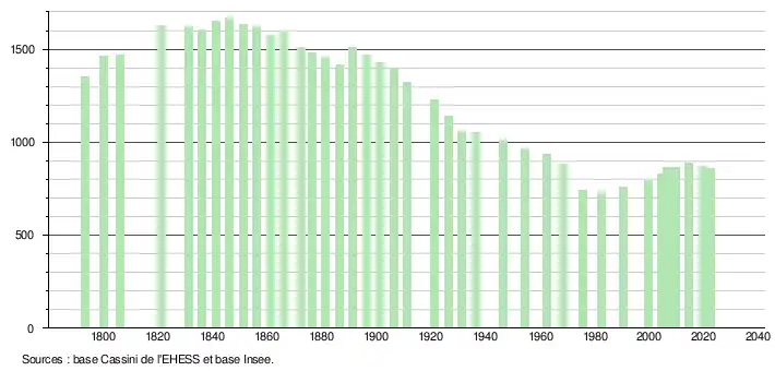 - ↑ Fiches Insee - Populations de référence de la commune pour les années 2006, 2007, 2008, 2009, 2010, 2011, 2012, 2013, 2014, 2015, 2016, 2017, 2018, 2019, 2020, 2021 et 2022.