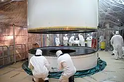 Le , la navette Challenger est détruite en tuant son équipage 73 secondes après son décollage, à la suite de la rupture du joint torique entre deux segments d'un des deux propulseurs d'appoint à poudre (boosters)[19]. C'est la vingt cinquième mission du programme et la dixième de l'orbiteur Challenger. L'enquête de la Commission Rogers met en cause la mauvaise gestion du programme par la NASA : le problème à l'origine de l'accident était récurrent et identifié mais avait été sous-estimé, faute de dialogue et par aveuglement du management[20]. Le rapport révèle également que le risque couru par les équipages est beaucoup plus important que prévu au décollage et dans la phase de retour à Terre. D'importants travaux sont entrepris, en particulier sur les boosters, mais également sur les moteurs de l'orbiteur pour réduire celui-ci.