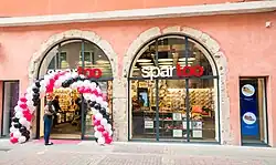 En , Spartoo démarre la distribution physique avec l'ouverture de son premier magasin à Grenoble. Après plusieurs vagues d'ouvertures, le groupe dispose en 2016 de 14 magasins en propre[12]. La même année, Spartoo internalise sa logistique. Le groupe dispose de son propre entrepôt (à Saint Quentin Fallavier, banlieue de Lyon) de 23 000 m² d'où partent les commandes des clients européens[13].
