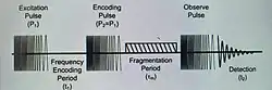 - Par la méthode dite « R.F. chirp »[4] : l’utilisation d’une seule impulsion d’excitation qui balaye toute la gamme de fréquences d’intérêt.