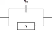 Une interface électrode électrolyte se comporte en régime dynamique comme un condensateur appelé condensateur de double couche interfaciale et noté . Cette double couche électrique ou électrochimique est décrite par le modèle de Gouy-Chapman-Stern. Le comportement en régime dynamique d'une réaction redox en absence de gradient de concentration des espèces électroactives est donc analogue à celui du circuit électrique de la Fig. 2.