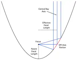 Les miroirs paraboliques hors axe sont couramment utilisés pour collimater et focaliser le rayonnement THz. Le rayonnement d'une source ponctuelle efficace, telle qu'une antenne LT-GaAs (région active ~ 5 μm) incident sur un miroir parabolique hors axe devient collimaté, tandis que le rayonnement collimaté incident sur un miroir parabolique est focalisé en un point (voir schéma). Le rayonnement térahertz peut ainsi être manipulé spatialement à l'aide de composants optiques tels que des miroirs ainsi que des lentilles constituées de matériaux transparents à ces longueurs d'onde. Les échantillons pour la spectroscopie sont généralement placés à un foyer où le faisceau térahertz est le plus concentré.
