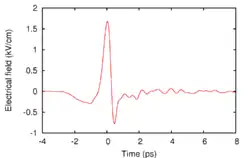 La courte durée des impulsions THz générées (généralement ~ 2 ps ) est principalement due à la montée rapide du courant photo-induit dans le semi-conducteur et aux matériaux semi-conducteurs ayant des porteurs à courte durée de vie (par exemple, LT-GaAs). Ce courant peut ne persister que quelques centaines de femtosecondes, jusqu'à plusieurs nanosecondes, selon le matériau qui compose le substrat. [réf. nécessaire]