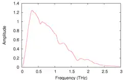 Les impulsions produites par cette méthode ont des niveaux de puissance moyens de l'ordre de plusieurs dizaines de microwatts[5]. La puissance de crête pendant les impulsions peut être supérieure de plusieurs ordres de grandeur en raison du faible rapport cyclique de la plupart du temps> 1%, qui dépend du taux de répétition de la source laser. La bande passante maximale de l'impulsion THz résultante est principalement limitée par la durée de l'impulsion laser, tandis que la position en fréquence du maximum du spectre de Fourier est déterminée par la durée de vie du porteur du semi-conducteur[6].