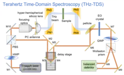 En physique, la spectroscopie TéraHertz dans le domaine temporel ( THz-TDS ) est une technique spectroscopique dans laquelle les propriétés de la matière sont sondées avec de courtes impulsions de rayonnement térahertz. Le schéma de génération et de détection est sensible à l'effet de l'échantillon sur l'amplitude et la phase du rayonnement térahertz. En mesurant dans le domaine temporel, la technique peut fournir plus d'informations que la spectroscopie à transformée de Fourier conventionnelle, qui n'est sensible qu'à l'amplitude. La nature impulsionnelle de la radiation utilisée donne accès à des quantités comme l’indice complexe de réfraction en mesurant le retard introduit par la traversée de l’échantillon.