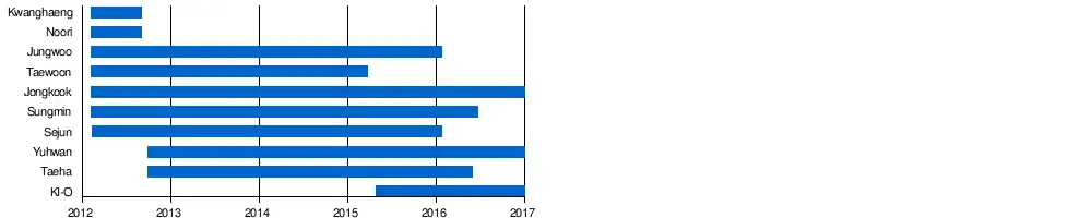 Noori Kwang Haeng Taewoon Jungwoo Sejun Taeha Sungmin Yuhwan Jongkook KI-O |