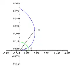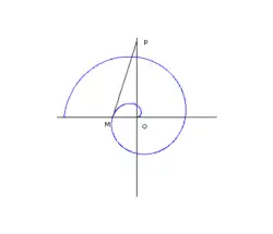 Il suffit alors de tracer la tangente à la spirale au point M associé à π. Elle rencontre la droite (Oy) en P. On obtient alors le rapport